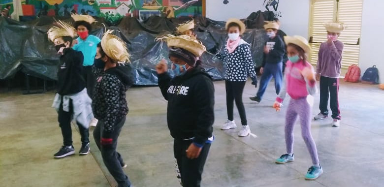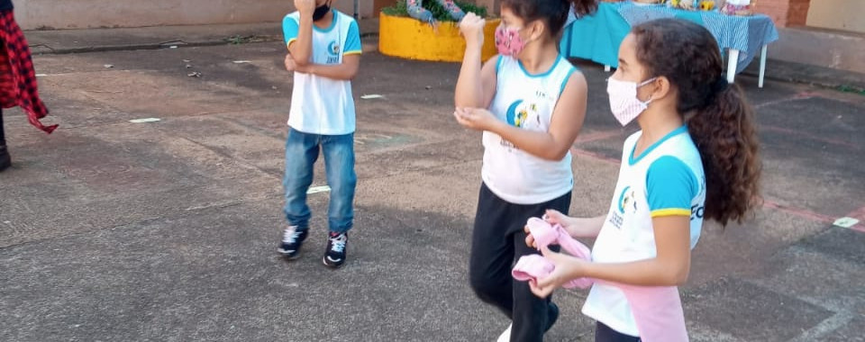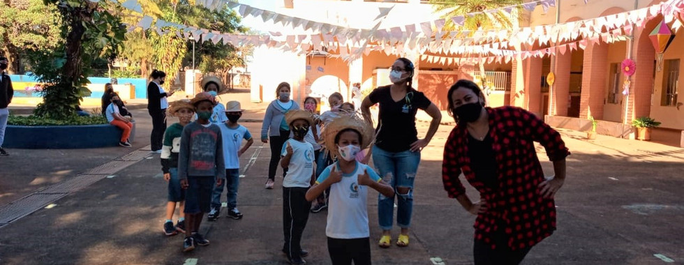 Para os educandos da opção presencial, foi realizado uma vivência Junina com várias danças e uma mesa com comidas típicas 🍿🌽🍰