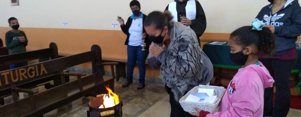 Desta forma, seguindo todos os protocolos sanitários e respeitando-se o credo religioso das crianças durante a reflexão, nos reunimos na capela de nossa Instituição para esta vivência. Contamos com a presença do Frei Everton que falou sobre a importância e o valor da oração e que em seguida incensou e incinerou os pedidos escritos pelas crianças. O educador Marcos Vinicius deixou sua oração em forma de música, dando um toque todo especial. ❤️